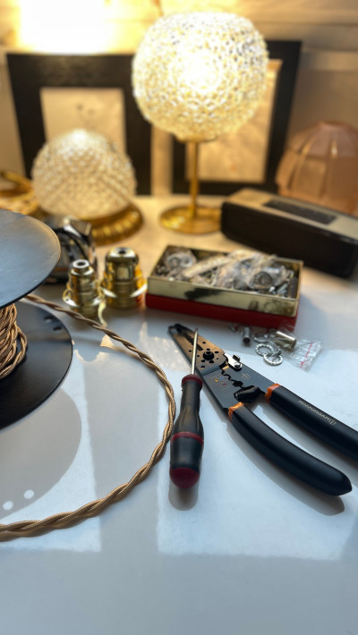 C’est un véritable travail de passion et de savoir-faire artisanal. Chaque globe ancien chiné est soigneusement inspecté, nettoyé et restauré. Ensuite, je conçois un nouveau modèle de luminaire en tenant compte des caractéristiques uniques de chaque globe. Enfin, je procède à l'électrification en utilisant des composants neufs, assurant que chaque pièce est non seulement de toute beauté mais aussi fonctionnelle et sécurisée.